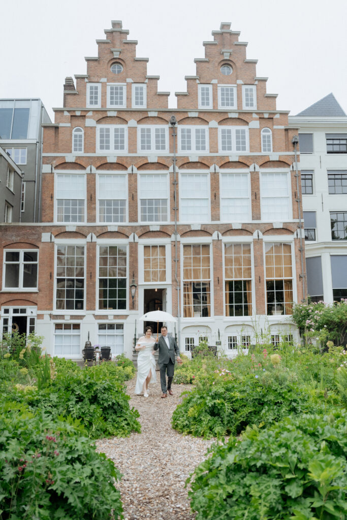 Paul & Meredith wilden graag een intieme, bij hun passende, Amsterdamse bruiloft. Het was een internationaal gezelschap met een Amerikaanse bruidegom en Nederlandse bruid. Familie kwam vanuit Amerika en Europa om deze liefdevolle dag mee te mogen maken. De ceremonie werd gestart met een strijkkwartet en er lagen vintage zakdoekjes op de stoelen voor de gasten. Het huwelijk werd ingeluid met een borrel in de tuin van het museum en werd voortgezet op een Amsterdamse salonboot. Het restaurant de Willem was aangekleed met vintage kaarsenhouders en bloemetjes die de bruid zelf had verzameld. Hun liefde voor bijzonder eten en geweldige wijnen was duidelijk zichtbaar tijdens het diner. Geen groot feest met DJ maar een intiem einde na een heerlijk diner. De gasten mochten zelf een geschenk meenemen, het bruidspaar had boeken uitgekozen, ingepakt en handgeschreven briefjes over het boek erbij gedaan.